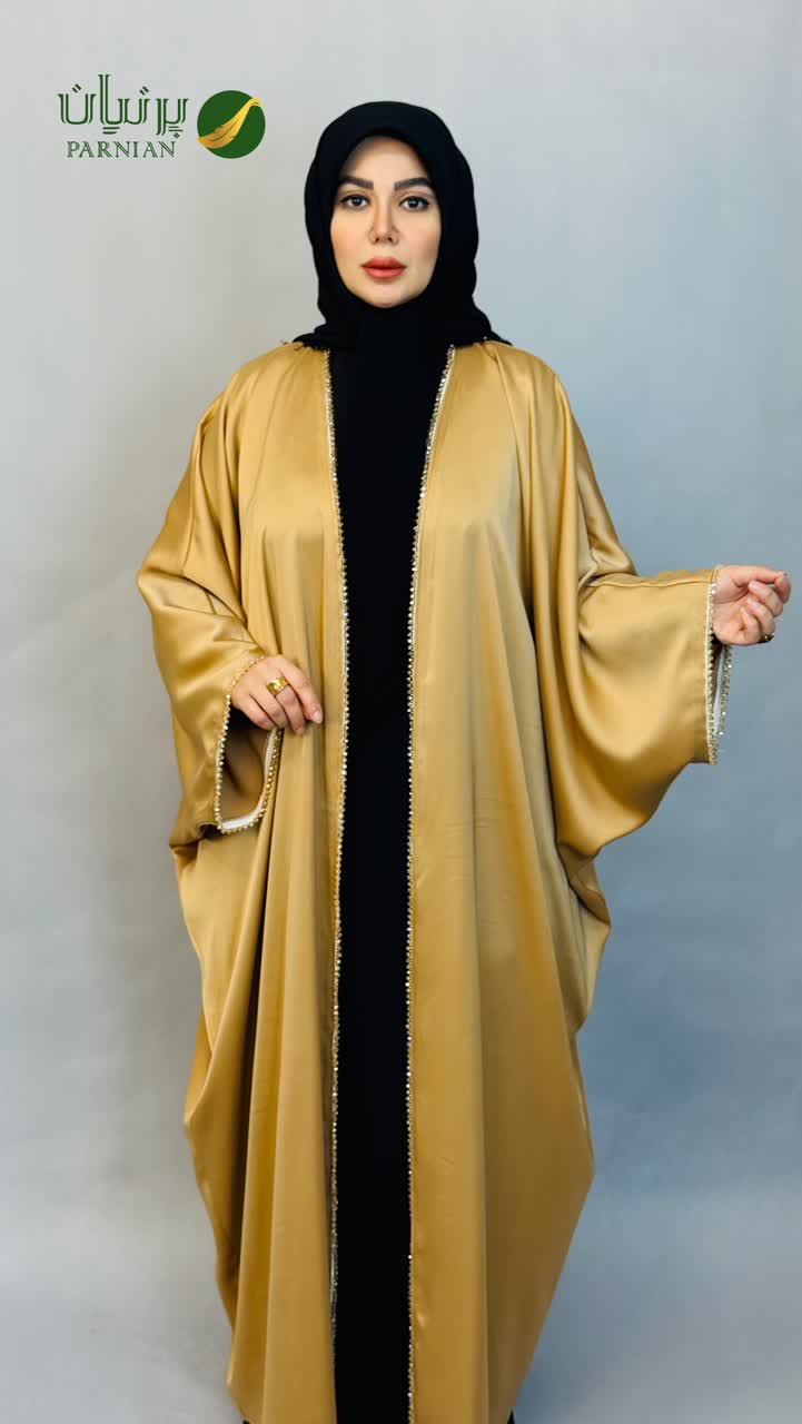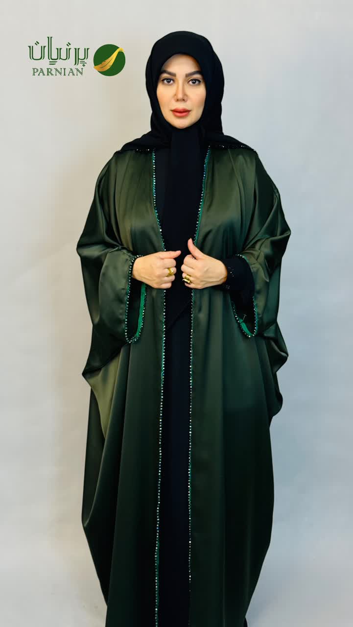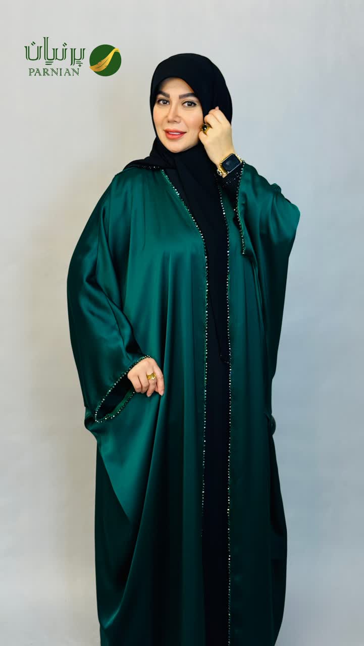 مانتو عبا ساتن کریشه سبز کله غازی