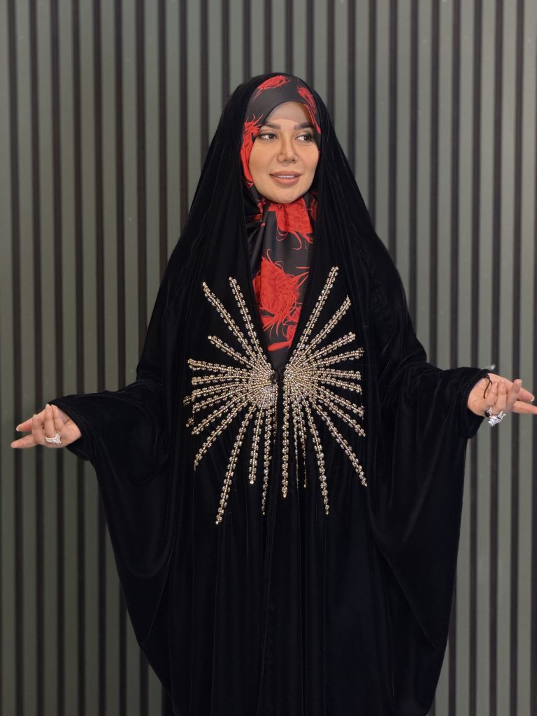 مدل چادر به سبک کاملاً عربی اصیل طراحی شده و با جواهردوزی‌های درخشان برند سوآرُسکی (Swarovski) تزئین شده است که رنگ آن‌ها ثابت بوده و در برابر شست‌وشو و مرور زمان تغییر نمی‌کند. این ترکیب از اصالت، کیفیت و درخشش، انتخابی لوکس و ماندگار برای بانوان خوش‌سلیقه است.
