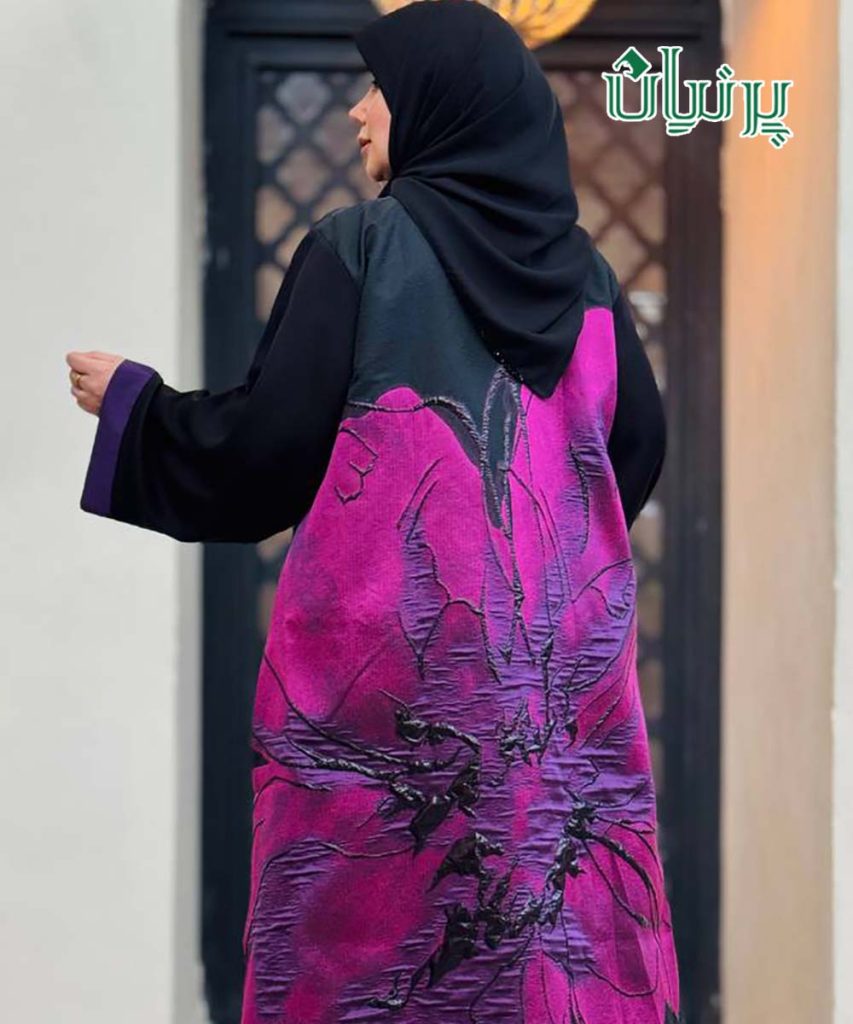 عبای ندا اماراتی به همراه گلدوزی های رنگی که استایل شما را کاملاً مرتب و ظریف دیده شود.