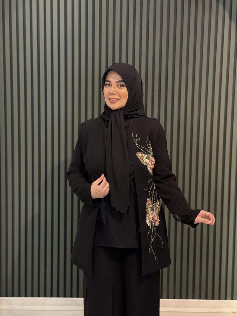 جذابترین بخش این مانتو کتی، جواهردوزیهای اصل برند سوآرسکی است؛ جواهری با درخشندگی بالا، کیفیت عالی و رنگ کاملاً ثابت که جلوهای لوکس و خیرهکننده به کار میبخشد.