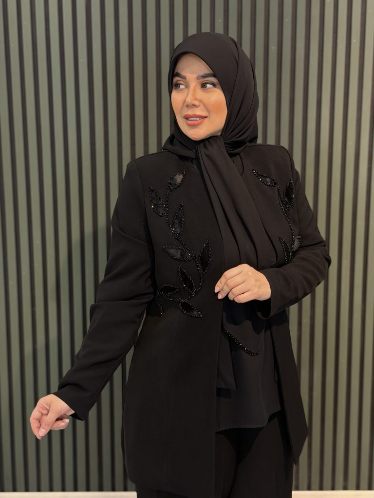 جذابترین بخش این مانتو کتی، جواهردوزیهای اصل برند سوآرسکی است؛ جواهری با درخشندگی بالا، کیفیت عالی و رنگ کاملاً ثابت که جلوهای لوکس و خیرهکننده به کار میبخشد.