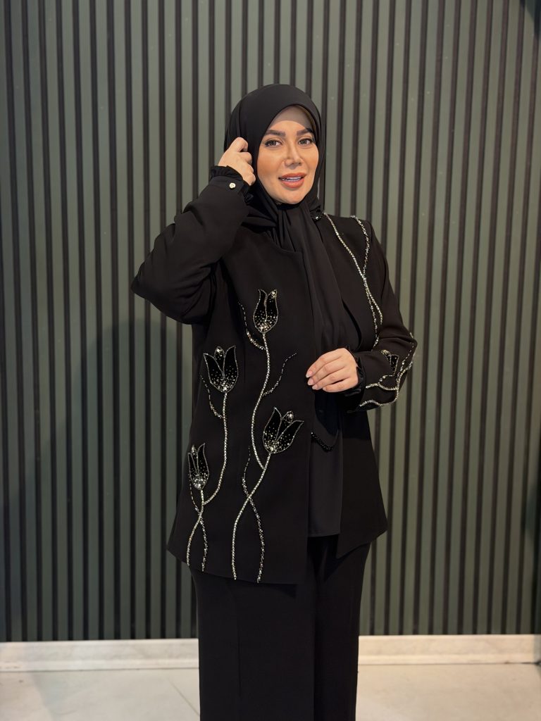 جذاب‌ترین بخش این مانتو کتی، جواهردوزی‌های اصل برند سوآرسکی است؛ جواهری با درخشندگی بالا، کیفیت عالی و رنگ کاملاً ثابت که جلوه‌ای لوکس و خیره‌کننده به کار می‌بخشد.