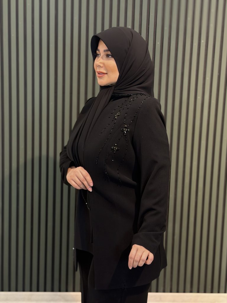 جذابترین بخش این مانتو کتی، جواهردوزیهای اصل برند سوآرسکی است؛ جواهری با درخشندگی بالا، کیفیت عالی و رنگ کاملاً ثابت که جلوهای لوکس و خیرهکننده به کار میبخشد.