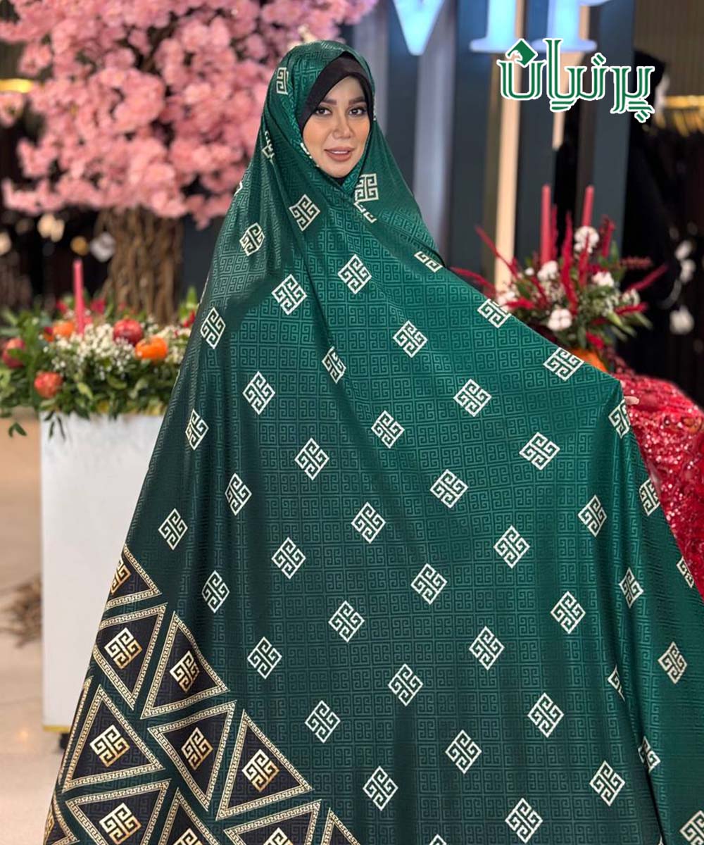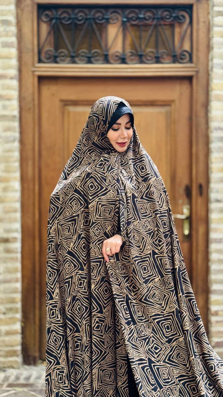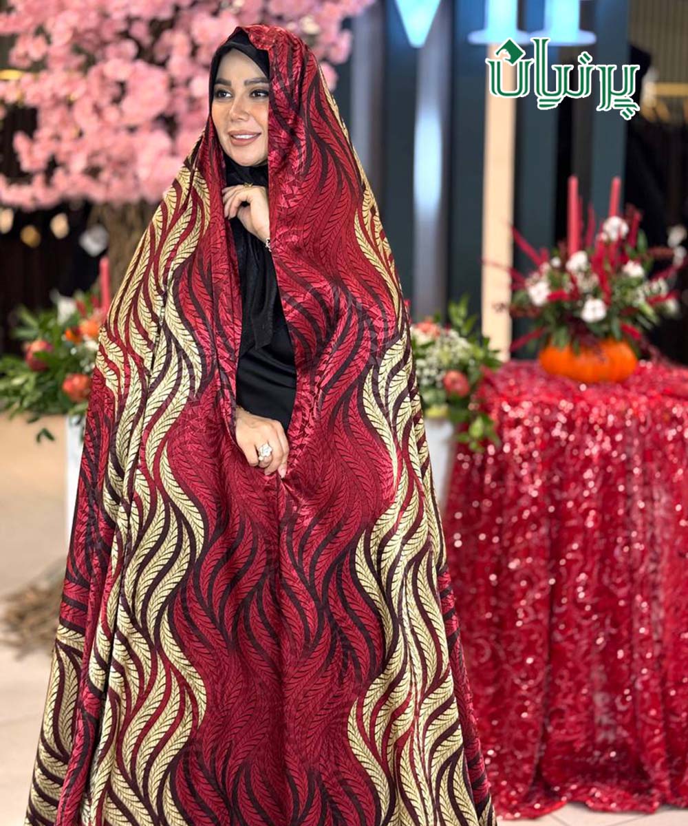 • ظاهر: طرح‌های بافته‌شده درون خود پارچه (نه چاپی) که جلوه‌ای فاخر و سه‌بعدی به چادر می‌دهد.