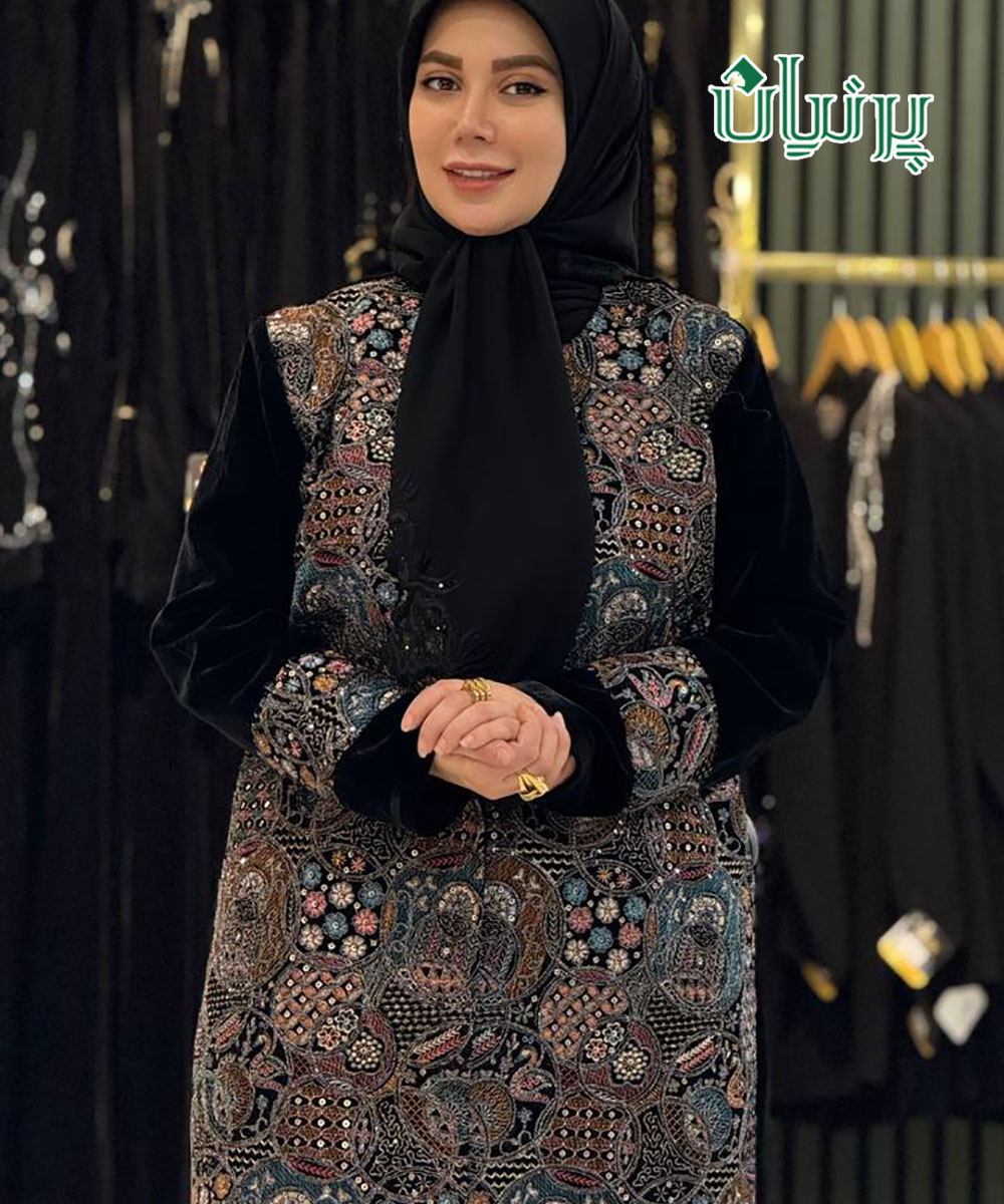 چادر کرپ ابریشم دوخته مدل میزبان (لبنانی)