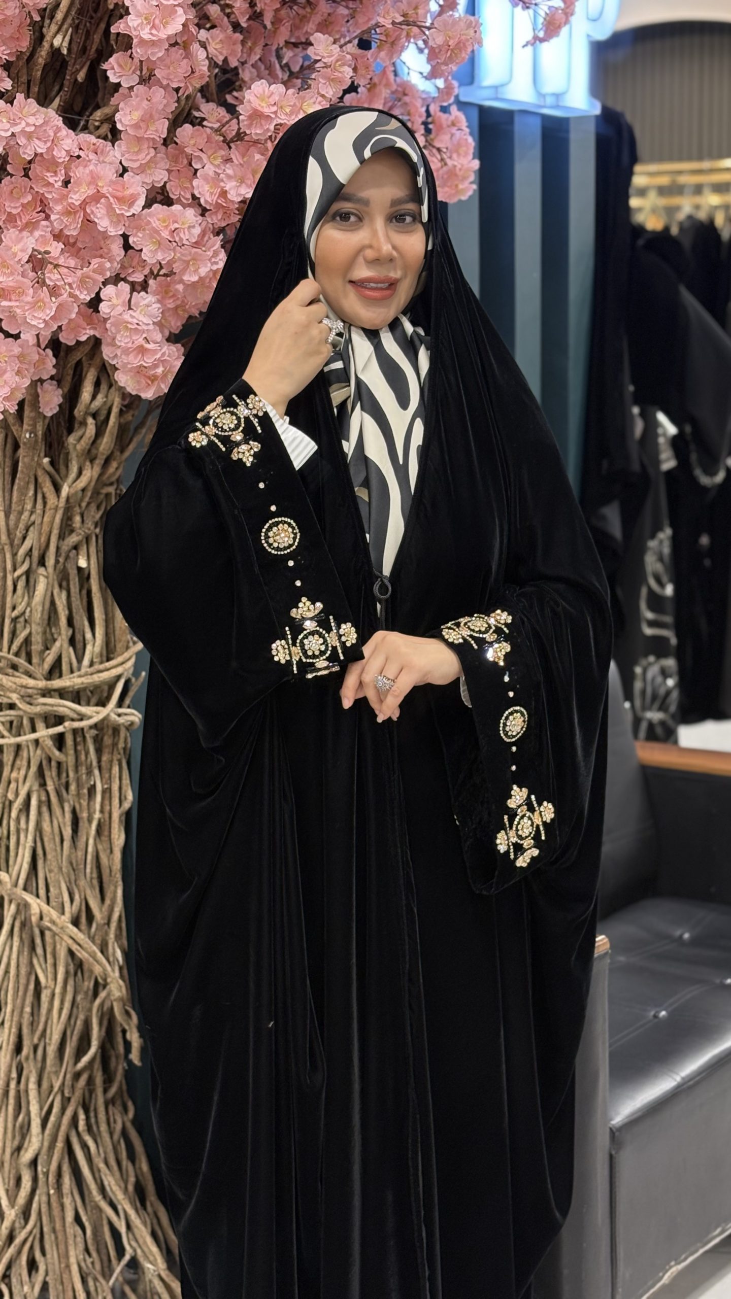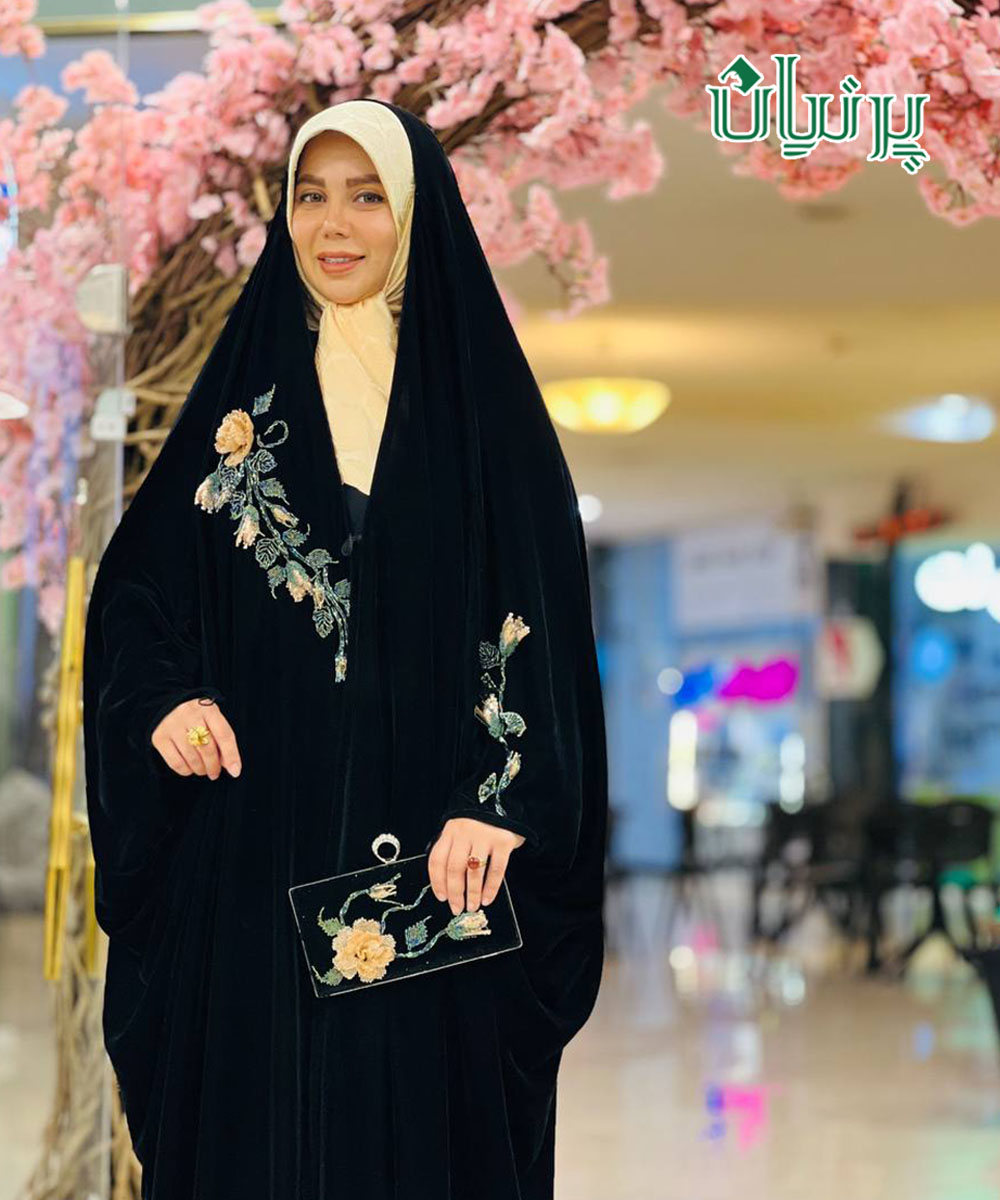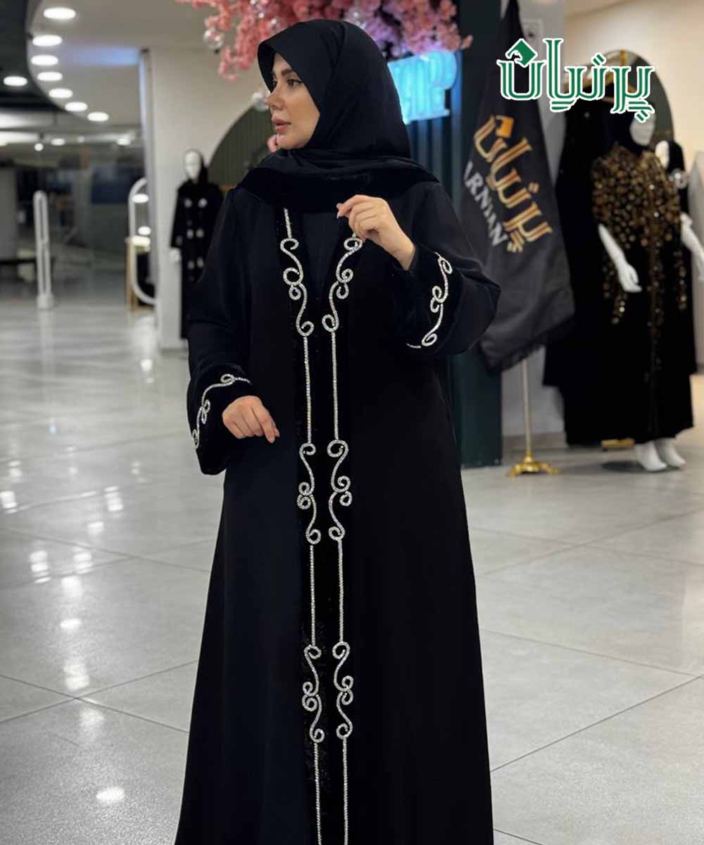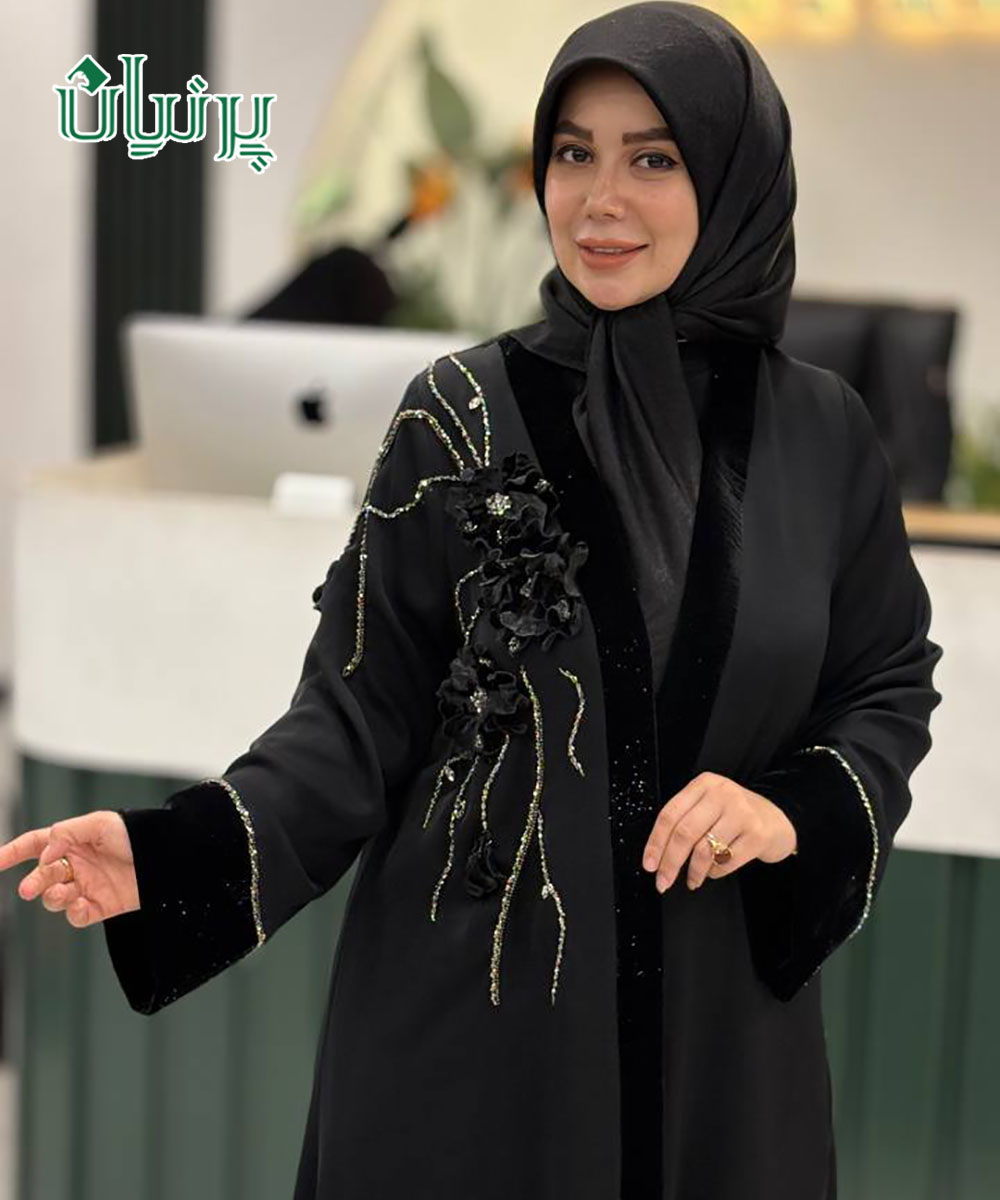 مانتو عبا ویدا مچ اشرافی جلو مخمل گل مخمل برجسته