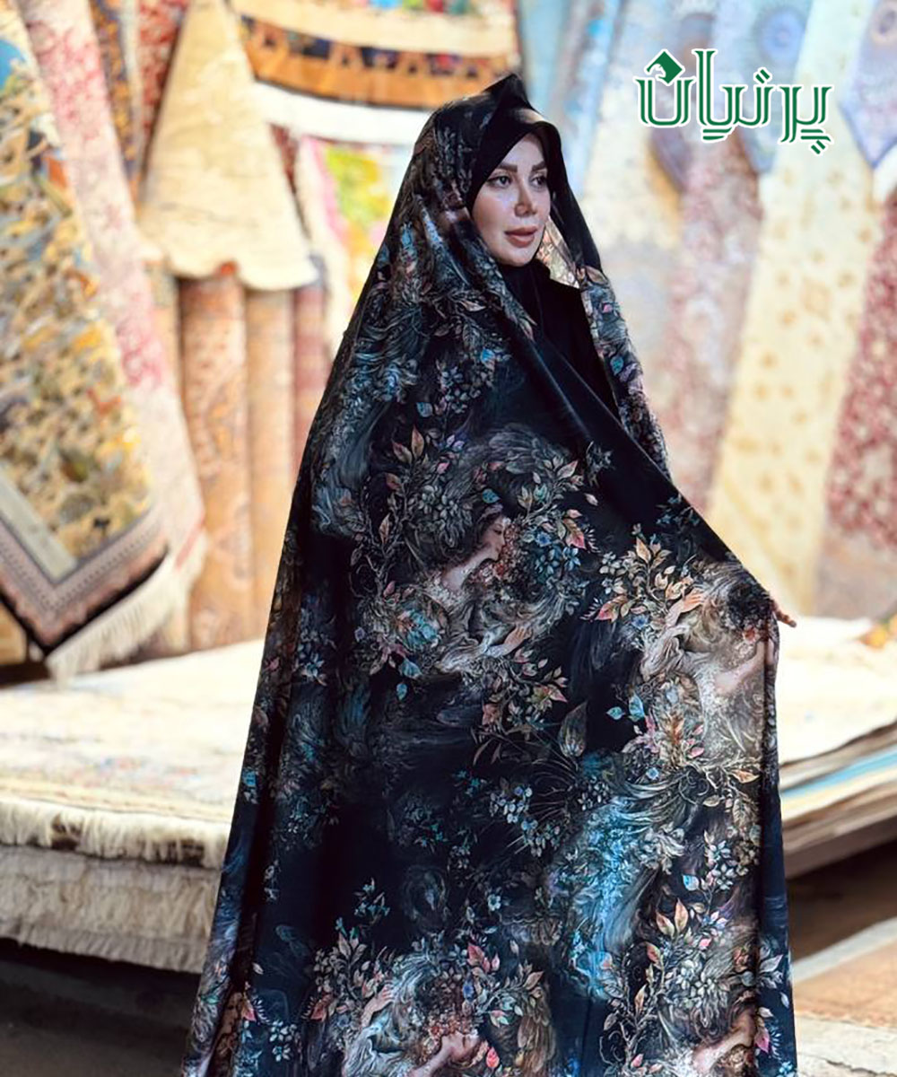 چادر قواره کرپ اندونزی طرح چهار بعدی بدون نگین